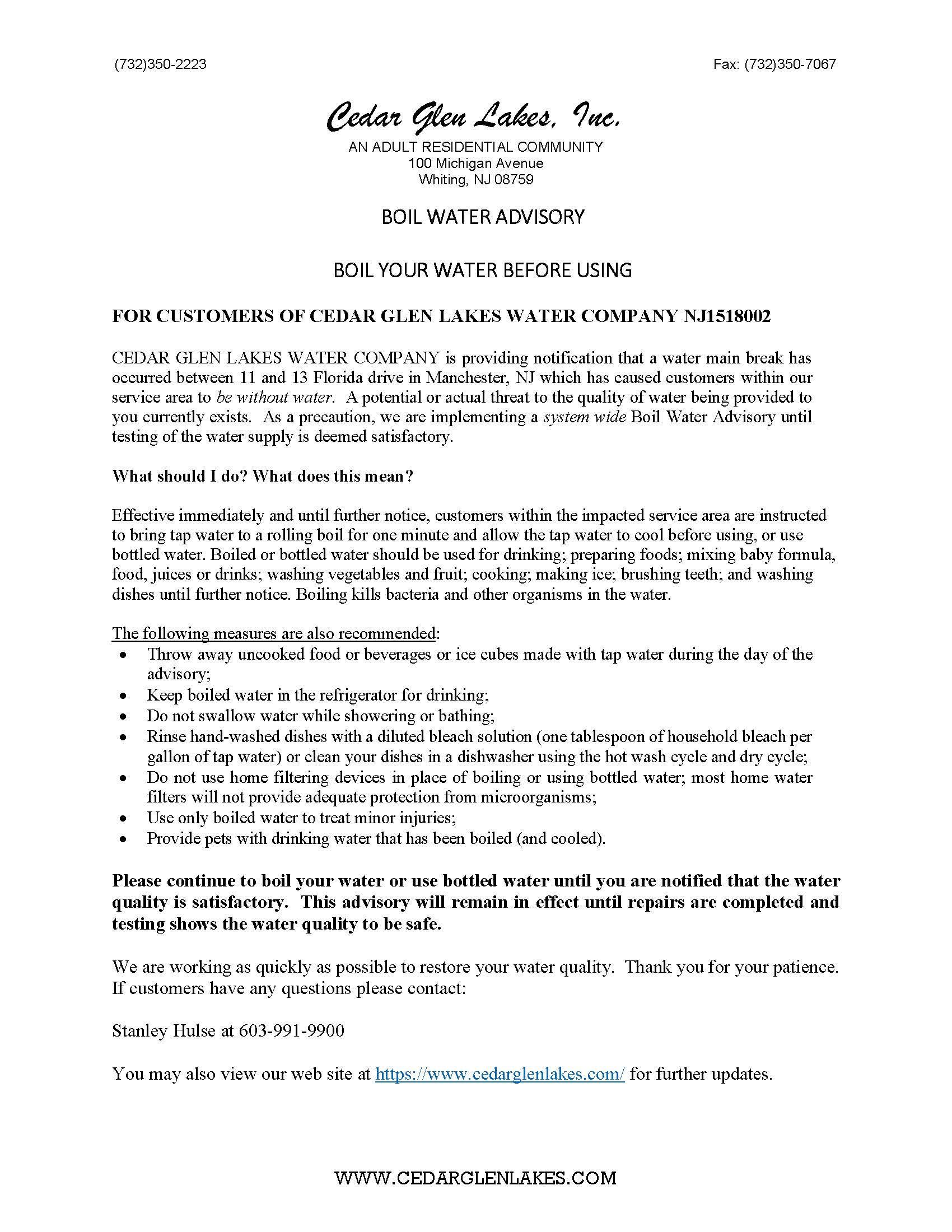 CEDAR GLEN LAKES RESIDENTS: SOS IS AVAILABLE TO SHOP FOR YOUR GROCERIES(CASH ONLY), TAKE YOU TO A LOCAL DOCTOR APPOINTMENT, PHARMACY OR BANK. CALL 732-350-7300 MONDAY, WEDNESDAY OR FRIDAY FROM 9:30 - 11:30 AM